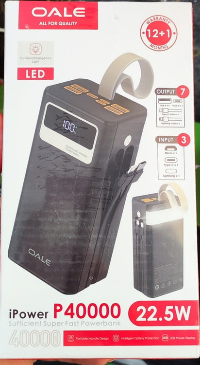 پاوربانک OALE iPower P40000 با ظرفیت 40,000 میلیآمپر ساعت، مناسب کسانی است که نیاز به شارژ بلندمدت چند دستگاه بهطور همزمان دارند. این مدل ترکیبی از ظرفیت بالا، فناوری شارژ هوشمند و امکانات کاربرپسند را در بدنهای جمعوجور ارائه میدهد.