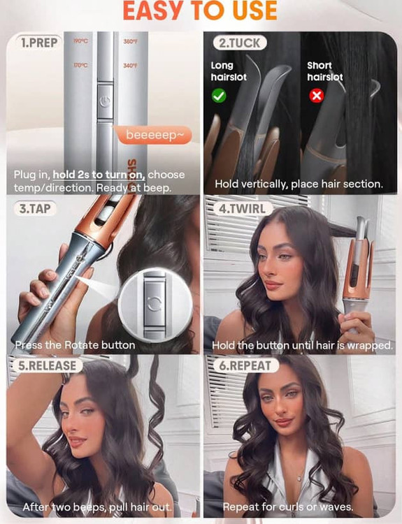 طراحی هوشمند و راحت: One-Touch Instant Curler با طراحی منحصر به فرد خود، به کاربران این امکان را میدهد که تنها با فشردن یک دکمه، فرهایی زیبا و طبیعی بسازند. دستگاه به طور خودکار موها را به دور لوله فر میچرخاند و به آنها شکل میدهد.