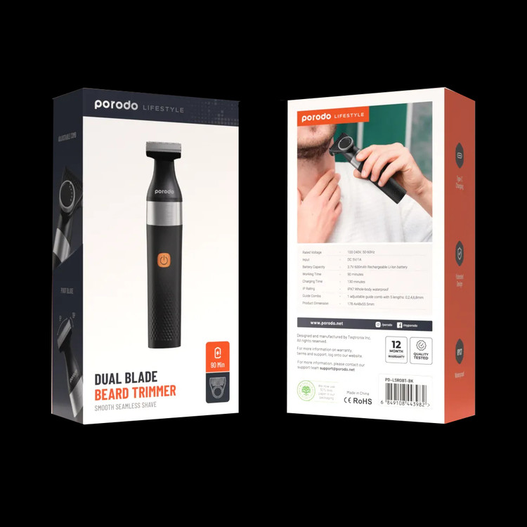 ماشین اصلاح شارژی پرودو مدل Dual Blade PD-LSROBT دارای گواهی IPX7 برای مقاومت در برابر آب است. این به این معناست که شما میتوانید از این دستگاه در محیطهای مرطوب استفاده کنید و بدون دغدغه آن را بهراحتی تمیز کنید.