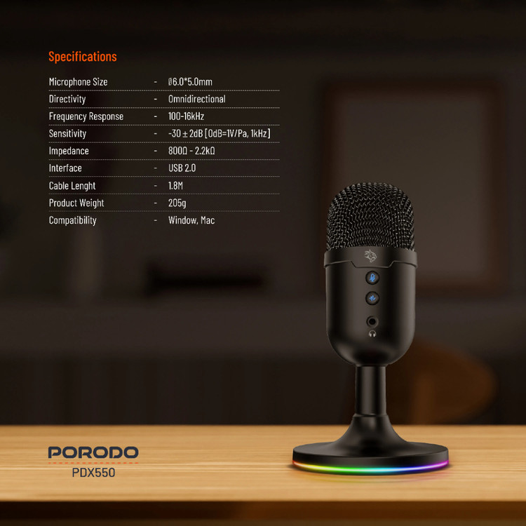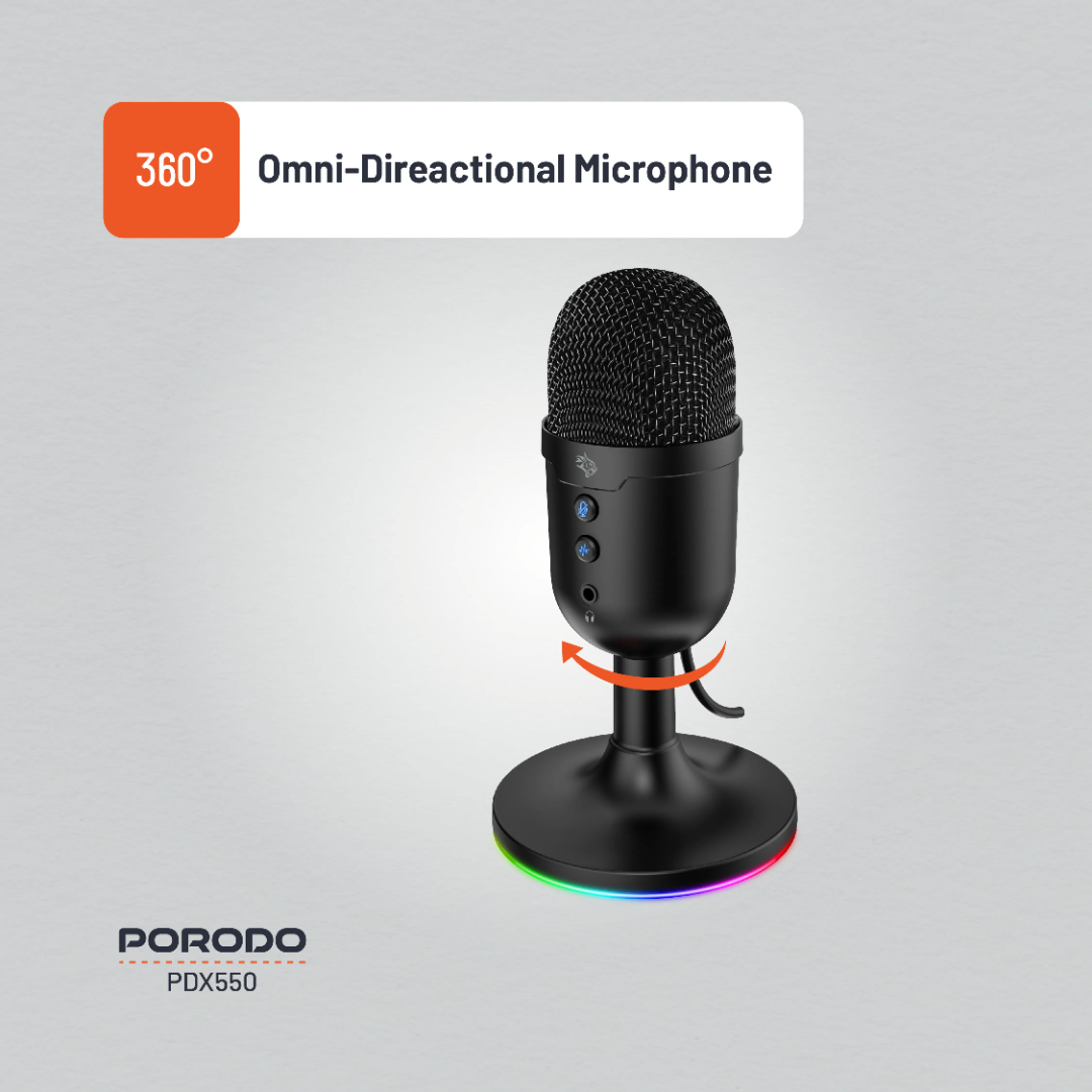 میکروفون USB همه جهته بازی Porodo، یک راهکار صوتی یکپارچه با کیفیت بالا را ارائه میدهد که بازیکنان بازیهای کامپیوتری، استریمرها و تولیدکنندگان محتوا را به طور یکسان هدف قرار میدهد. این میکروفون با حساسیت -32±2dB و محدوده فرکانسی گسترده بین 100 هرتز تا 16 کیلوهرتز، حرفهایترین وضوح را در ارائه صدای واضح یا صدای ضبط شده در بازیها به دست میآورد. طراحی همه جهته 360 درجه، دریافت صدای ثابت از همه طرف را تضمین میکند و بنابراین برای بحثهای گروهی یا جلسات بازی فراگیر عالی است. این دستگاه دارای یک دکمه بیصدا کردن راحت است، دارای حذف نویز با فشار برای واضحترین صدای ممکن است و با نورپردازی RGB قابل تنظیم است تا با تنظیمات شما مطابقت داشته باشد. سازگار با سیستم عاملهای ویندوز و مک، از طریق USB 2.0 به صورت plug-and-play با طول 1.8 متر برای موقعیتیابی انعطافپذیر، قابل اتصال است. میکروفون بازی Porodo جمع و جور اما قدرتمند، عملکرد و سبک را در یک دستگاه ترکیب میکند که تمام نیازهای صوتی شما را برطرف میکند.